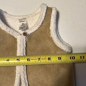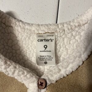 Carters tan faux suede vest with Sherpa lining. Single front button with loop. Size .9 month. Excellent condition