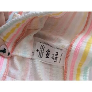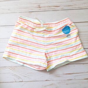 Carter's striped pull on shorts. Soft cotton elastic waist shorts with drawstring closure. Stripes of white, blue, yellow, pink and red.