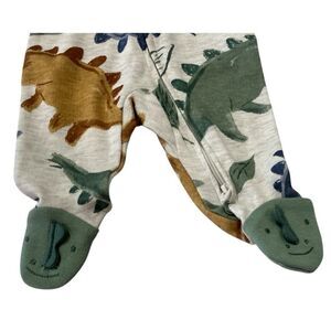 Cute dinosaurs on this preemie bodysuit with little dinosaur feet and 2-way zipper. New with Tags