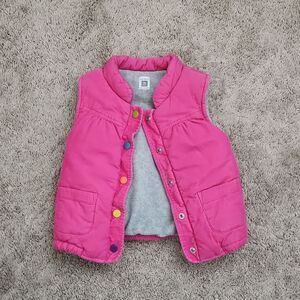 Carter's girls puffer vest Pink corduroy with grey fleece inside. Color buttons 3T