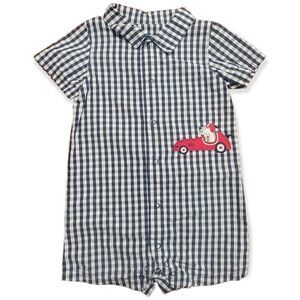 #Navy #white #plaid #checker #casual #romper #racecar #dog #snap #toddler #boy #casual #24mth #sale #embroidery #embroidered