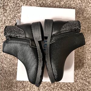 Brand new with tags and box black satin with black glitter side zipper closure flexible outsole easy on and off