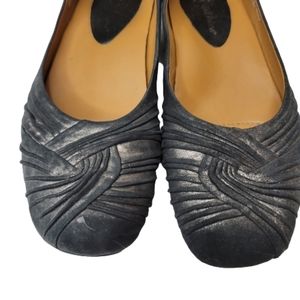 Carthies pewter leather flats. Soft insole..small sole. Size 6 1/2. 12 hour shoe. Pre-owned. Smoke free home
