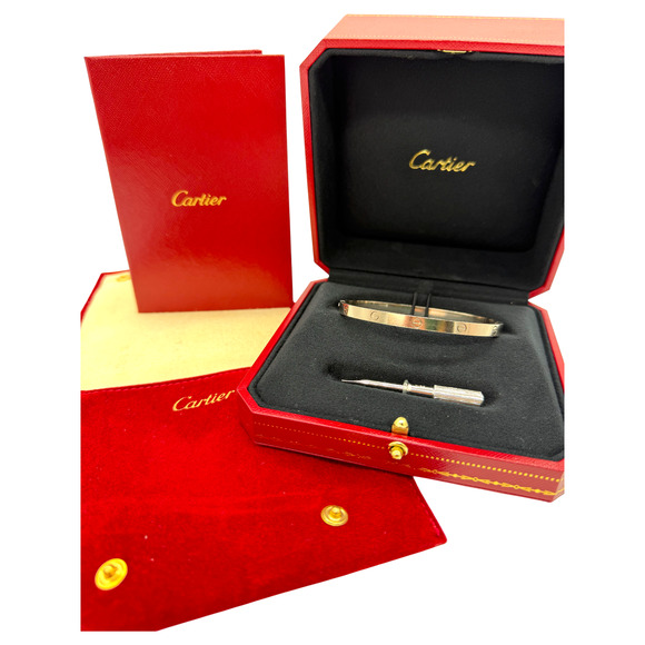 Authentic Cartier 18K White Gold Love Bracelet Size 19 Medium Model Box Hinge 2024