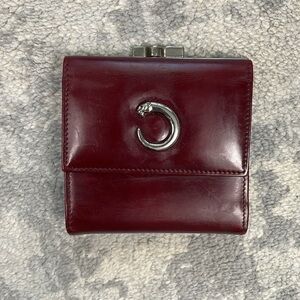 Cartier Bordeaux Panthere Glossy Leather Wallet Trifold Kisslock Compact