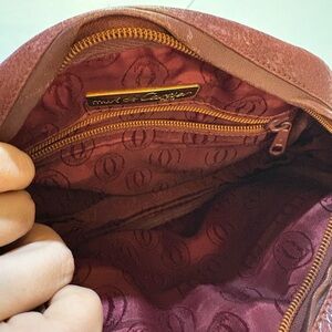 Elegant Cartier crossbody bag. Rich brown leather. Features a tassel detail. Adjustable strap for comfort.