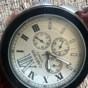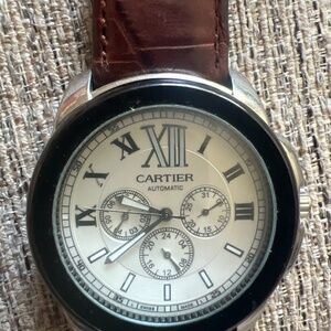 Authentic Cartier two-tone (steel & 18k gold) watch. Features Roman numeral dial with hidden ‘Cartier’ signature, Swiss-made movement, sapphire cabochon crown, and original serial number 225014PX. Elegant, timeless, and in excellent condition. Unfortunately no box but you can confirm the authenticity by serial name 225014PX