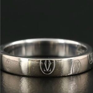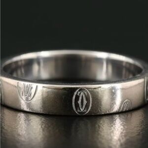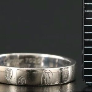 18k white gold Cartier band featuring detailed engravings of the Cartier logo. Gorgeous ring! Clean and clear engravings. Size 8