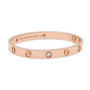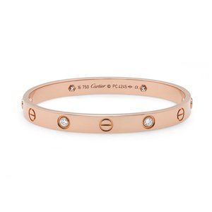 Cartier Love 4 Diamonds Bracelet Bangle 18K Rose Gold Size 16