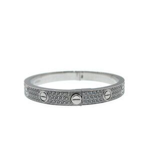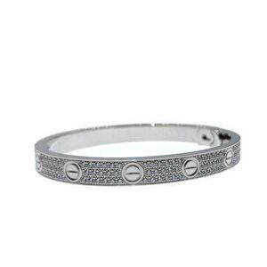 Cartier Love Bracelet Pave Diamond 18K Rose Gold Size 17