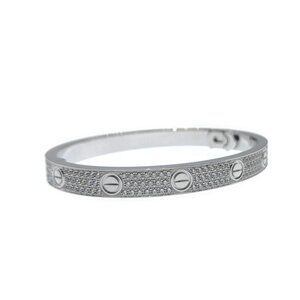 Cartier Love Bracelet Pave Diamond 18K Rose Gold Size 18