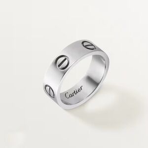 CARTIER LOVE RING, CLASSIC MODEL (SIZE 51) : Sleek silver band by Cartier. Features signature screw motifs. Timeless elegance.