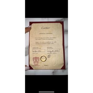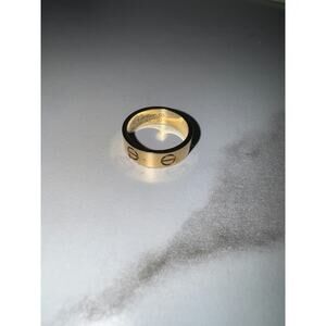 This Cartier Love ring is crafted from luxurious 18K yellow gold and is a symbol of timeless elegance. Despite minor scratches, it retains its classic beauty and sophistication. A perfect piece for everyday wear or special occasions. Comes with the original certificate of authenticity.