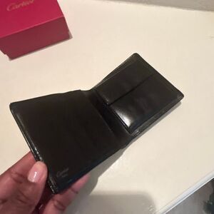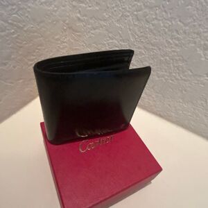 Cartier Mens Bifold Wallet Black Cowhide Leather Minimalist Classic Quiet Luxury