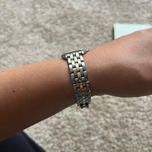 One row 18k yellow gold. Fits 5.7 inch wrist. Selling because it doesn’t fit since pregnancy :(