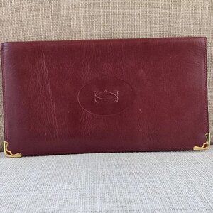 Cartier Paris Clutch Wallet Burgundy Red Leather Card Holder Purse Wallet Bag