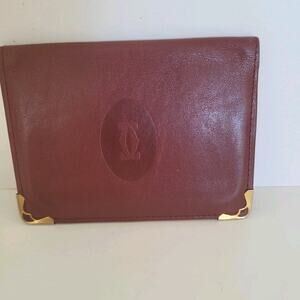 Cartier Paris Vintage Bifold Leather Bordeaux Red Wallet Small Compact Card