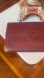 Red Bordeaux/burgundy leather vintage clutch wallet by Cartier Paris. Features elegant gold corner details. Ideal for a classic style.
