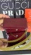Elegant red leather wallet. Features iconic Cartier logo embossing. Sleek and stylish design. Tearing at edge.
