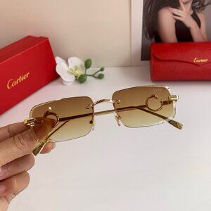 This refined Cartier gold rimless eyewear combines classic elegance with modern appeal, featuring stylish gradient lenses.