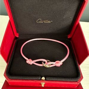 I have a LOVE bracelet let I’m going to post soon- it’s similar it has a black cord but I can get it changed to pink or any of others at Cartier.
