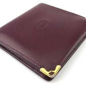 Cartier Two Folded Purse Mastline Boldeaux Leather Authentic USED