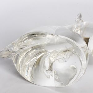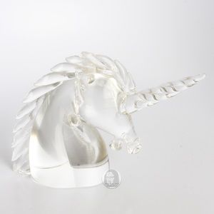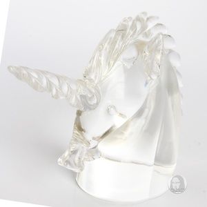 Here's a wonderful crystal piece from Cartier, designed by Italian artist Archimede Seguso. Can be used as home decor or a paper weight, this mystical creature measures appx 5.75in H x 7in L x 3in D. Signed CARTIER on its bottom. Comes in its original red Cartier box, too. In very good preowned condition with a few thin scratches from handling. Note that this piece will be double-boxed to prevent shipping damage (hence the price).