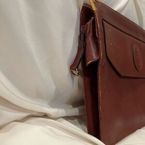 Lovely vintage Cartier pieces. Will sell separately if requested. I think they look fabulous together. Cartier clutch purse and cigarette case. Both are genuine leather and have gold-hardware. They are burgundy colors case slightly darker then the clutch. Logo on the front. Clutch has 2 large slip pockets. Envelope front with area for storage. Brand tags inside as shown in pictures. Both in very good condition. Both show some wear. Surface scratches and peeling inside the clutch. Still nice pieces! Refer to photos and video. Authentic merchandise ships fast usually within a business day.