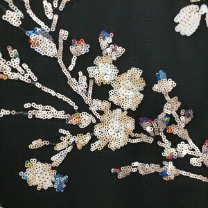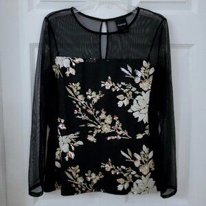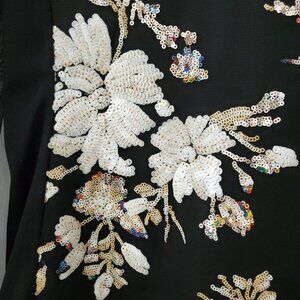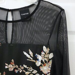 Cartise Sequins Dark Floral Embellished Mesh Women's Blouse Size Large