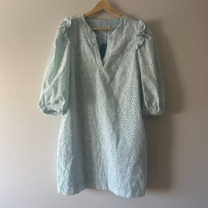 Cartolina Nantucket Embroidered Shift Eyelet Isabella Dress Spun Sugar Blue XS