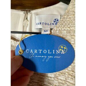 Cartolina Womens Short-Sleeve Tweed Shift Dress Beige Size 6
