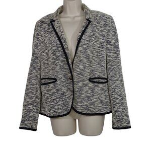 Cartonnier Anthoropologie Black White Tweed Blazer Jacket Women Size 10 Work