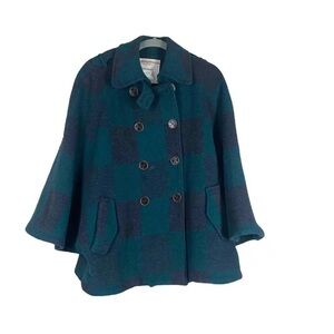 Cartonnier Anthropologie Buffalo Plaid Cape Coat Blue/Green, size L