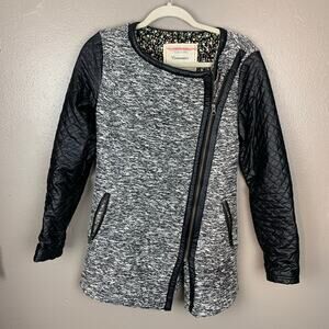 Cartonnier Anthropologie Gray Knit Jacket Women’s Small Faux Leather Quilted Sleeves Asymmetrical Zip