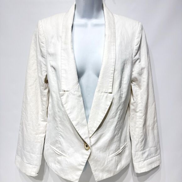 Cartonnier Anthropologie Linen Blend Blazer Jacket Women’s 10 Medium Boho White