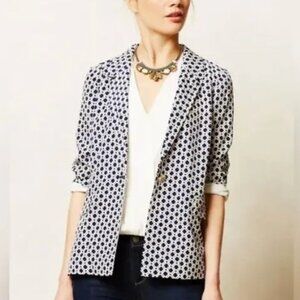 Cartonnier | Anthropologie Navy Southwark Blazer Geometric Print | Size Small