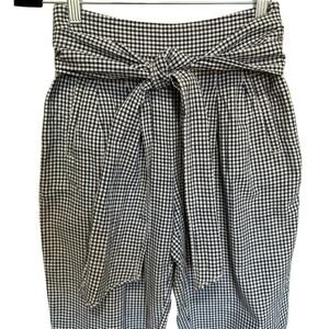 Cartonnier By Anthropologie Gingham Trouser Pants Tie Waist White Black Size 2
