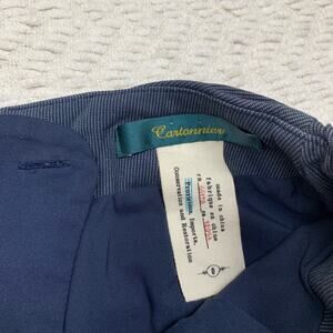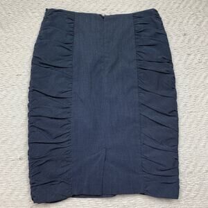 Gorgeous navy blue pencil skirt with dry unique ruffling didn’t the sides by an Anthropologie brand called Cartonnier. Perfect condition and super good quality. Such a classy piece that can be dressed up or down. Closure in the back with an invisible zipper. Size 0.