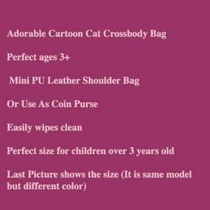Cartoon Cat Crossbody bag - Mini PU Leather Shoulder Bag - Perfect ages 3+