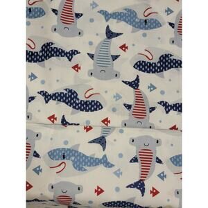 Cartoon Shark Great White Hammerhead Cotton Fabric 1 Yard 32 Inches New