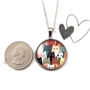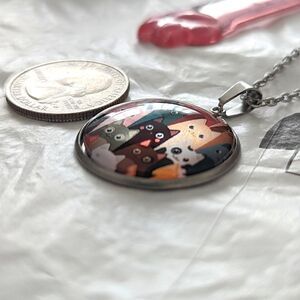 Cartoon Cats Theme Hand Crafted Stainless Steel Charm and Necklace