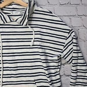 Carve Designs 100% Organic Cotton Navy Blue White Stripe Drawstring V Neck Pullover Size Medium