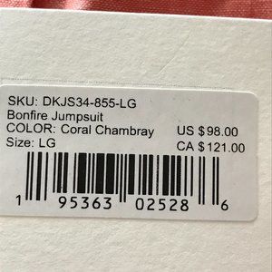Carve Designs Bonfire Jumpsuit Women Size Large Pink Button Up Pocket Tie Waist