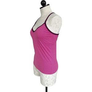 Carve Designs Catalina Striped Tankini Swim Top Pink Plum Shelf Bra Size Medium