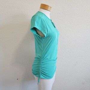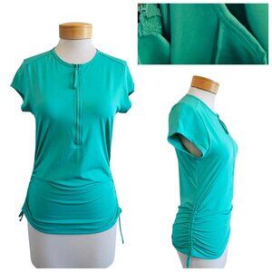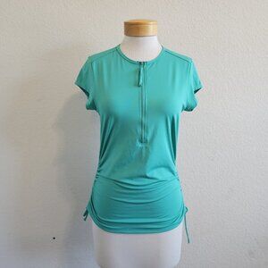 Carve Designs Dawson Green Cinch Side Zip Front Short Sleeve Modest Swim Top Rash Guard M