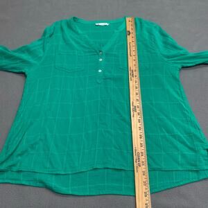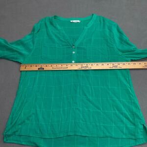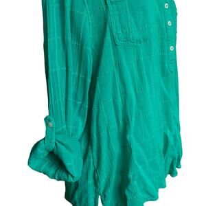Carve Designs Half Button Down Roll Sleeve Casual Shirt Womens XL Green Sheer