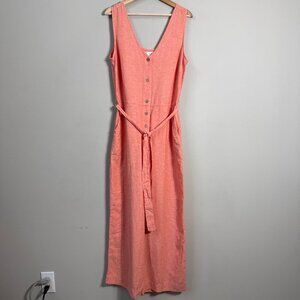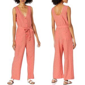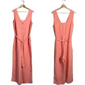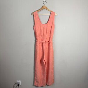 Carve Designs Linen Sleeveless Wide Leg Jumpsuit Womens Medium Coral Belted NWOT