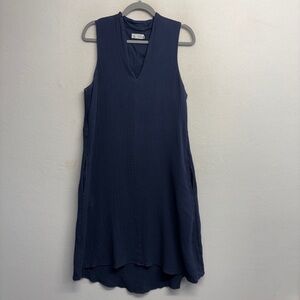 Carve Designs Navy Blue 10 Tank Midi Dress V Neck Hi Low Hem Cotton