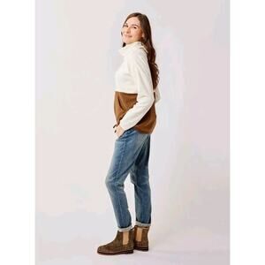 Carve Designs Rowayton Colorblock Cowl Top Women's Sz S IVORY RUST Preppy Luxe Quiet Luxury Comfort Soft Cozy Oversized Boxy Relaxed