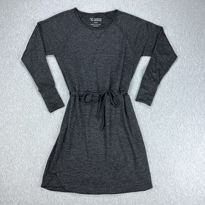 Carve Designs Womens Mini Shirt Dress M Heather Gray Raglan Sleeve Drawstring